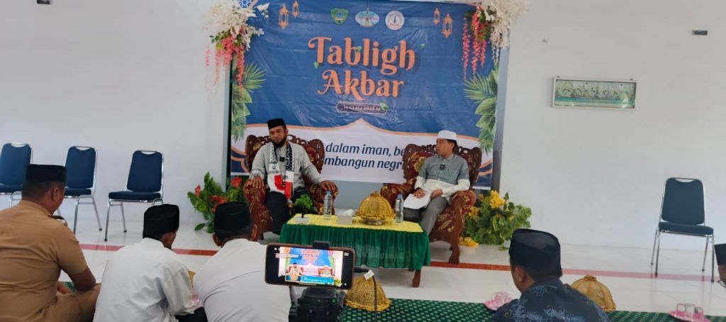 Rangkaian selanjutnya adalah penyampaian materi Tablig Akbar oleh Ustadz Dr. H. Rustam Koly, B.A., M.A. -Anggota Dewan Syariah Wahdah Islamiyah, Alumni S1, S2, dan S3 Universitas Islam Madinah Saudi Arabiah, dan Kaprodi Pendidikan Bahasa Arab IAI Stiba Makassar- yang dipandu oleh ananda Abdullah bin Taufan sebagai moderator. Penyampaian materi berlangsung dengan penuh khidmat serta mendapatkan perhatian dari seluruh hadirin. Pembahasan Utama dalam materi ini adalah perlunya upaya penerapan Kandungan Surah Al-'Ashr dalam kehidupan beragama, berbangsa, serta bernegara yang dibangun di atas persatuan iman dengan tujuan untuk turut serta dalam pembangunan negeri yang berdasarkan kemerdekaan dan keadilan sosial. Acara kemudian dilanjutkan dengan sesi tanya jawab yang direspon dengan beberapa pertanyaan, baik oleh instansi pemerintah maupun tokoh masyarakat. Pertanyaan mereka kemudian dijawab dengan jawaban yang sangat memuaskan sebelum moderator mempersilahkan pemateri untuk menyampaikan Closing Statement.
